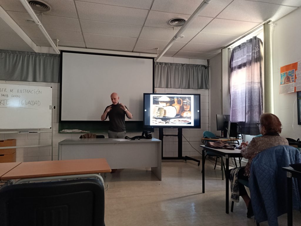 Dentro del Programa de Igualdad que lleva a cabo el CPEPA Bajo Cinca, recibimos la vista del Ilustrador David Guirao. La ponencia abordó la escasa visibilidad histórica de la mujer en el arte, destacando cómo, aunque algunas artistas lograron fama en su época, sus nombres han quedado en gran parte relegados al olvido, mientras que sus obras han perdurado a lo largo del tiempo. El alumnado, al descubrir estos ‘tesoros ocultos’, mostró un gran interés por el tema, disfrutó de la ponencia y participó activamente en el debate que surgió a partir de la temática, reflexionando sobre las razones de esta invisibilidad y la importancia de redescubrir estas contribuciones.».